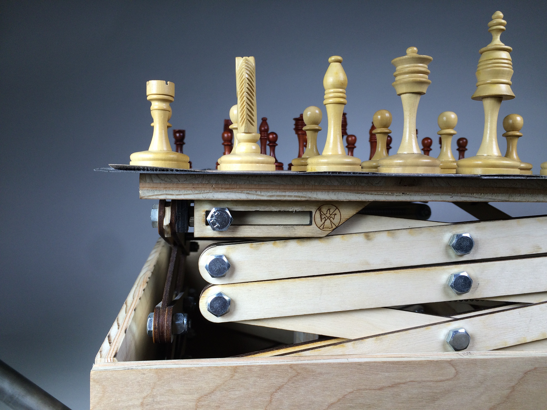 Taking inspiration from a scissor lift, I built a cardboard model to start getting an idea of what the board will look like.
